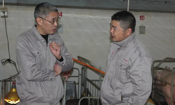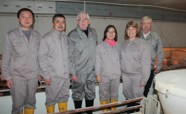 美國華多董事長麥克斯(Max)先生和美國種豬改良聯(lián)合會前任主席蘇哈(Socha)博士到生產(chǎn)區(qū)指導(dǎo)育種