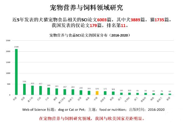 而我國在寵物營養與飼料領域的研究與歐美國家差距明顯,2016-2020年發表有關寵物食品的SCI論文僅為179篇,而美國共發表2108篇。寵物營養與飼料研究參與面亦有待提高,目前只有中國科學院、華南農業大學、中國農業大學等少數和科研機構開展相關研究。此外,研發基礎薄弱、功能聲稱缺乏科學依據、專業人才嚴重缺乏等問題。