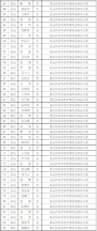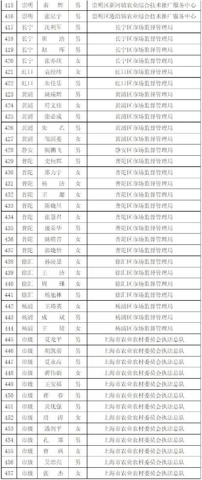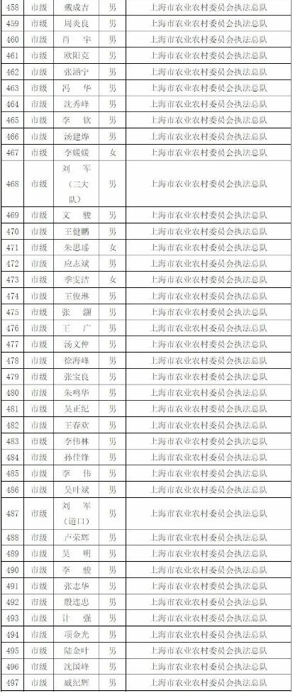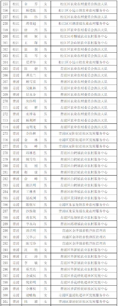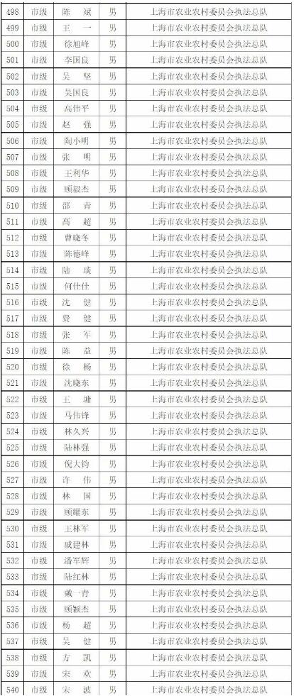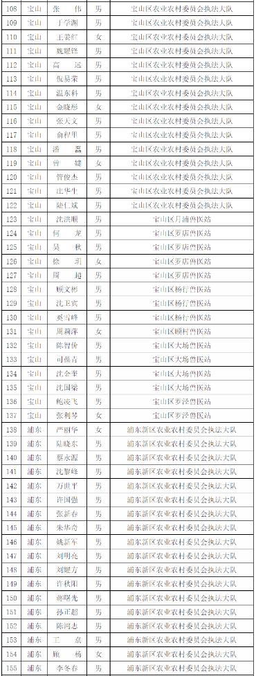 為進一步做好本市官方獸醫(含漁業官方獸醫)資格管理,加強隊伍建設,根據《中華人民共和國動物防疫法》《農業部關于做好動物衛生監督執法人員官方獸醫資格確認工作的通知》《農業部辦公廳關于官方獸醫資格確認條件的函》《農業農村部關于全面推進實施水產苗種產地檢疫制度的通知》和《農業農村部辦公廳關于開展動物檢疫監督能力提升行動的通知》的要求,我委組織開展了2022年度本市官方獸醫資格確認工作。經單位填報、區級復核、我委審查,擬確認以下565人具有官方獸醫資格,現公示如下: